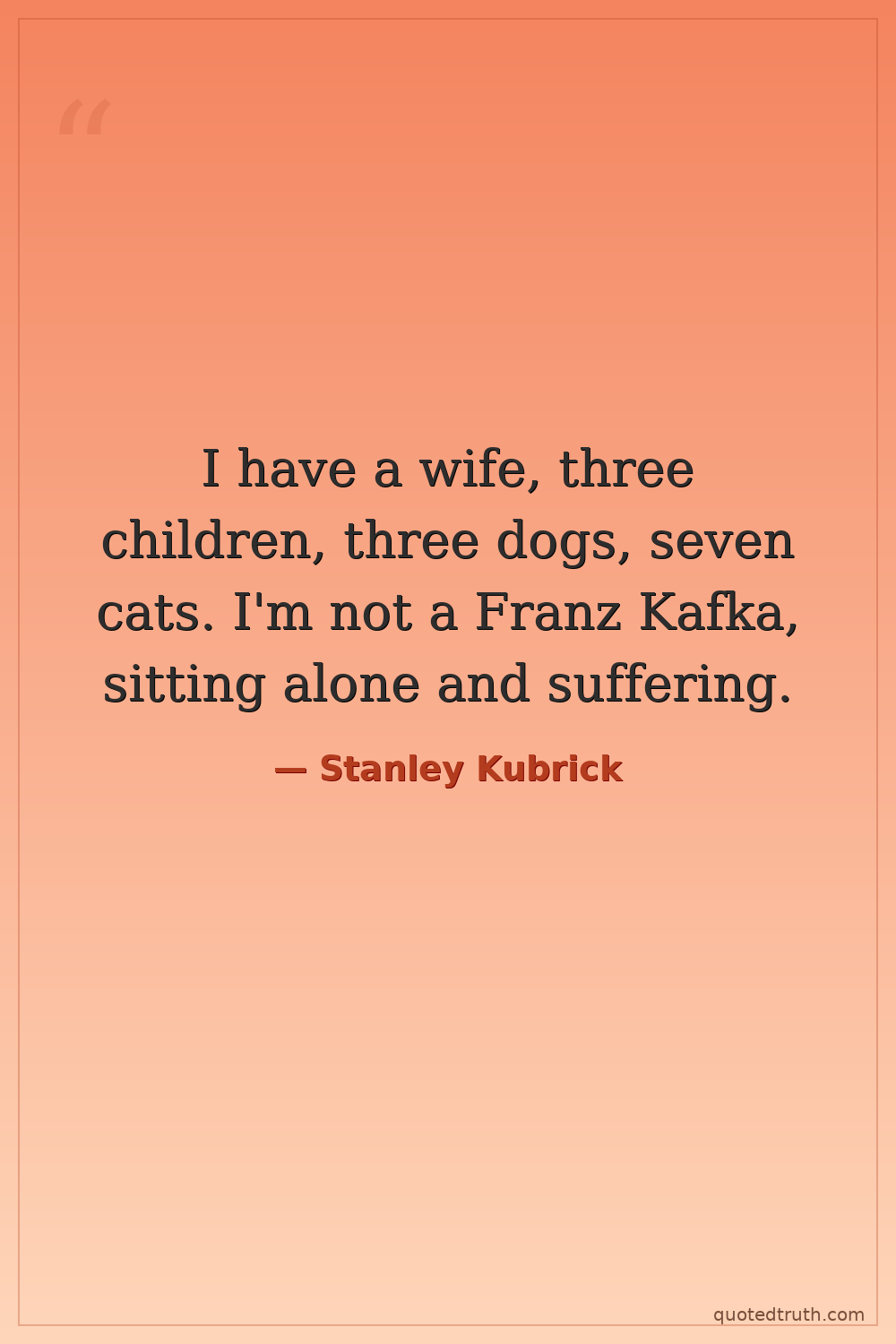I have a wife, three children, three dogs, seven cats. I'm not a Franz Kafka, sitting alone and suffering.