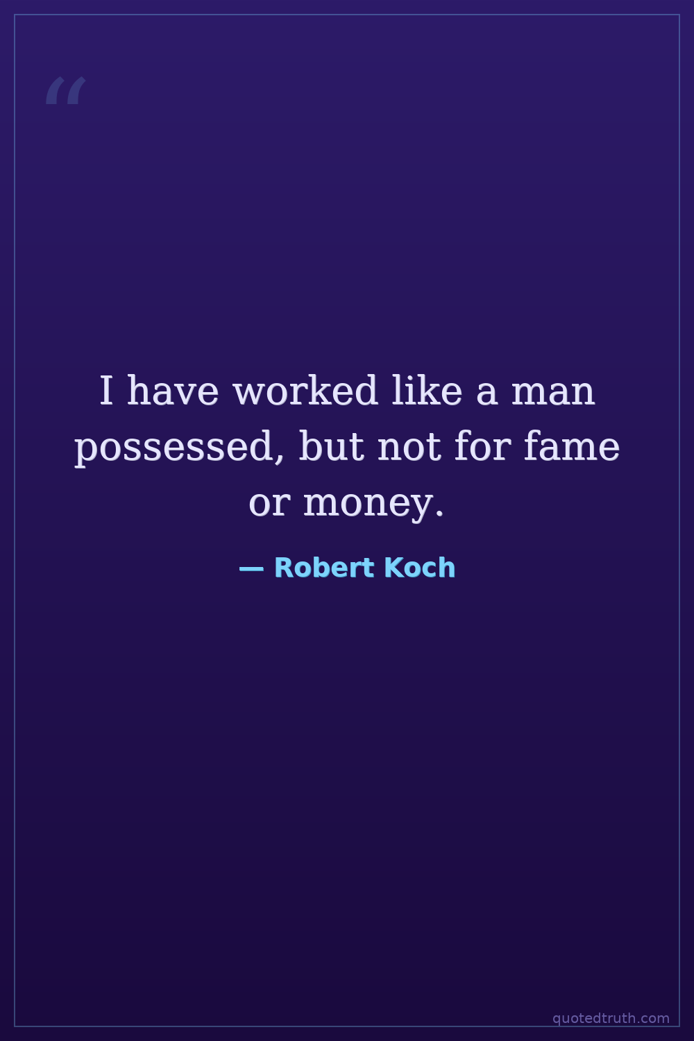 I have worked like a man possessed, but not for fame or money.