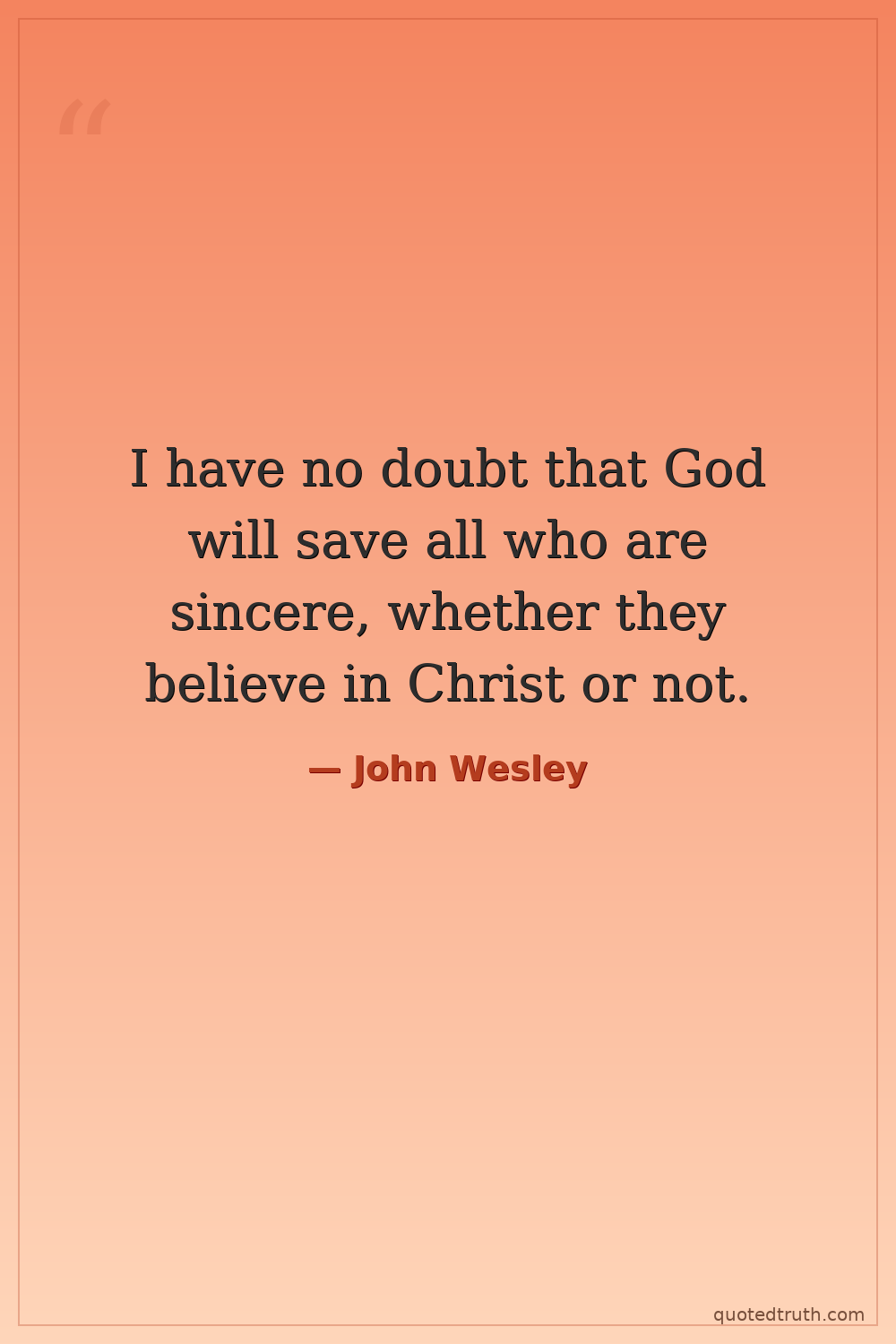 Shocking"I am not afraid that the people called Methodists should ever cease to exist either in Europe or America. But I am afraid lest they should only exist as a dead sect, having the form of religion withou…"