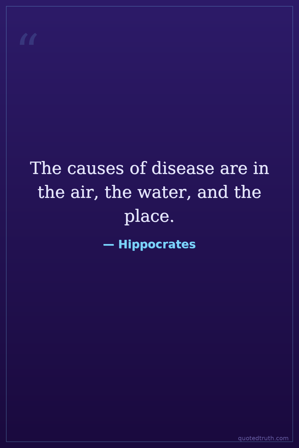 The causes of disease are in the air, the water, and the place.