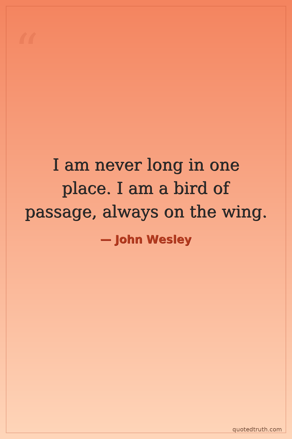 I am never long in one place. I am a bird of passage, always on the wing.