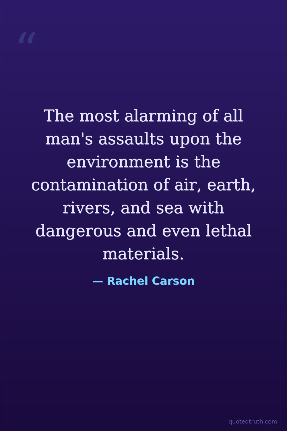 The most alarming of all man's assaults upon the environment is the contamination of air, earth, rivers, and sea with dangerous and even lethal materials.