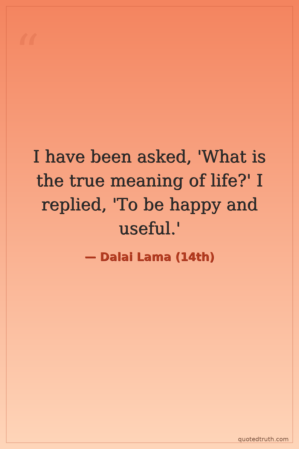 I have been asked, 'What is the true meaning of life?' I replied, 'To be happy and useful.'