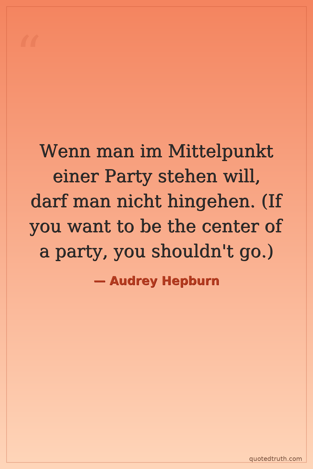 Wenn man im Mittelpunkt einer Party stehen will, darf man nicht hingehen. (If you want to be the center of a party, you shouldn't go.)