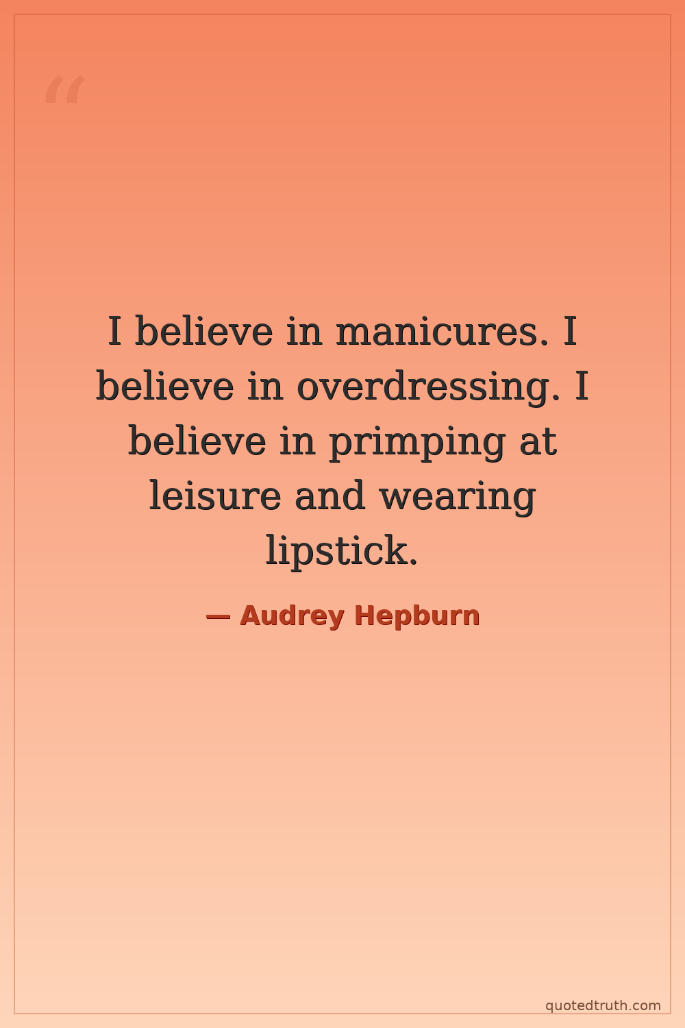 I believe in manicures. I believe in overdressing. I believe in primping at leisure and wearing lipstick.