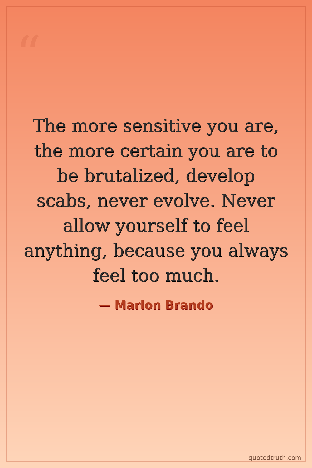 The more sensitive you are, the more certain you are to be brutalized, develop scabs, never evolve. Never allow yourself to feel anything, because you always feel too much.