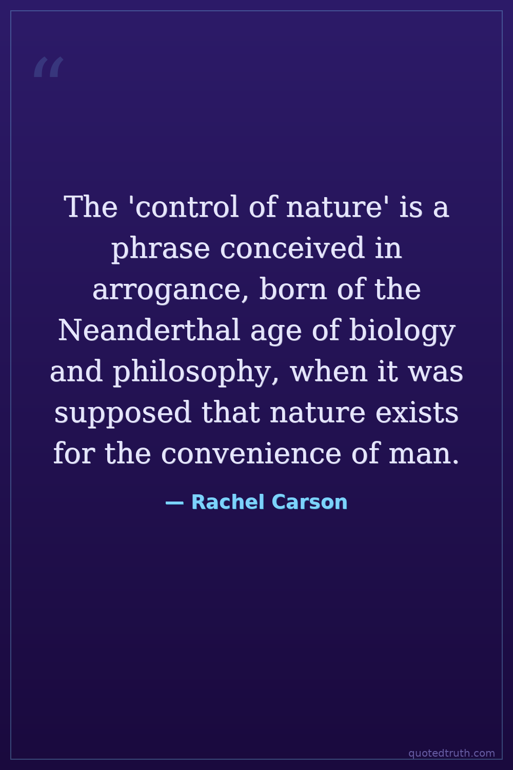The 'control of nature' is a phrase conceived in arrogance, born of the Neanderthal age of biology and philosophy, when it was supposed that nature exists for the convenience of man.