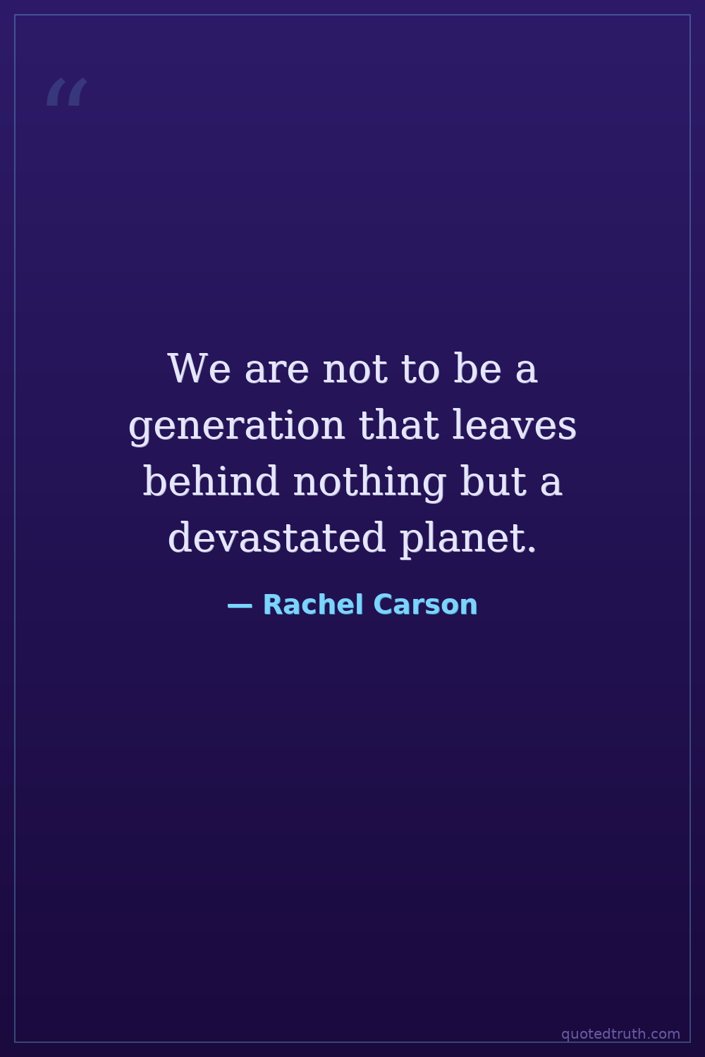 We are not to be a generation that leaves behind nothing but a devastated planet.