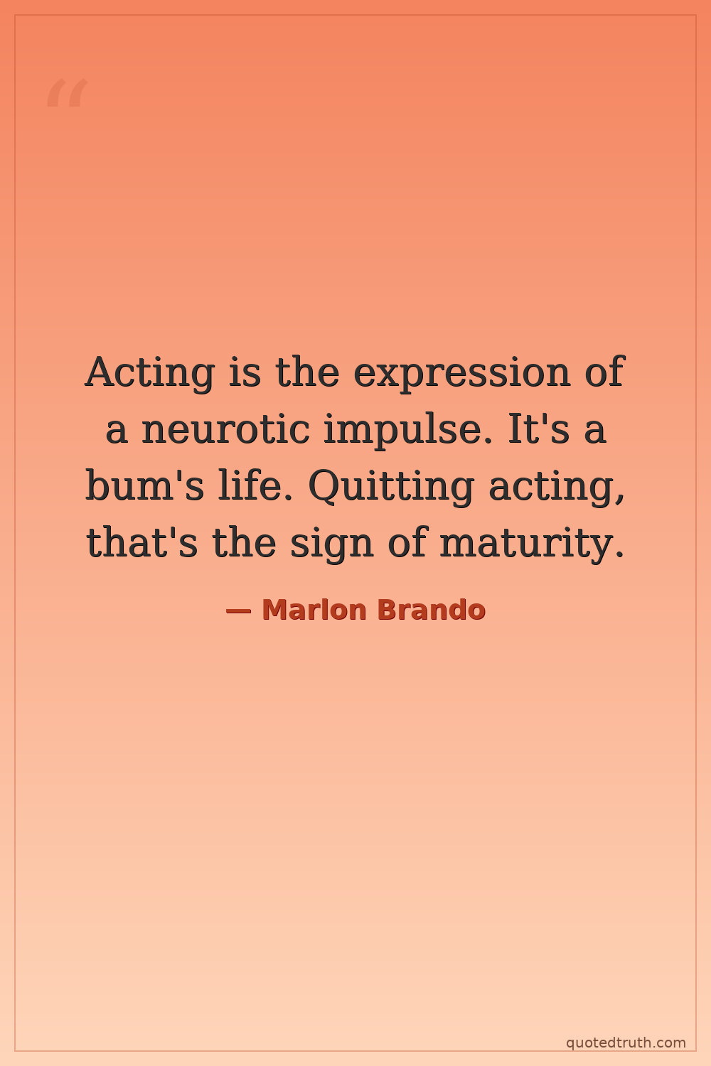 Acting is the expression of a neurotic impulse. It's a bum's life. Quitting acting, that's the sign of maturity.