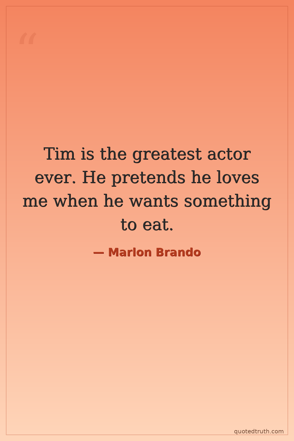 Response to a reporter asking if he realized he was the greatest actor ever, referring to his dog Tim.