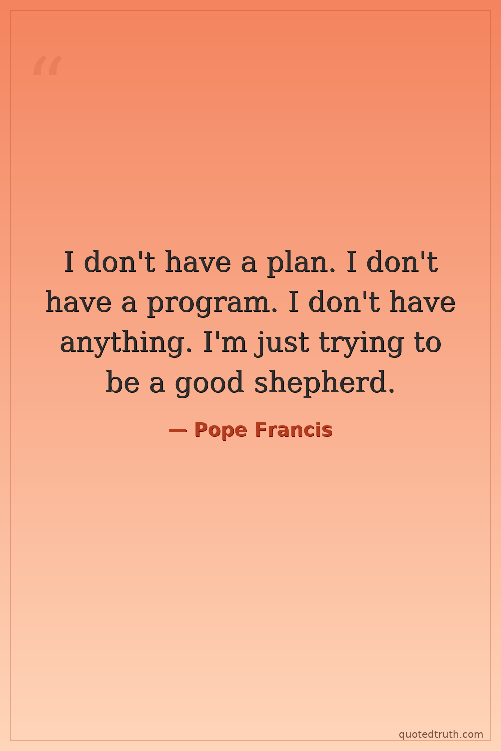 I don't have a plan. I don't have a program. I don't have anything. I'm just trying to be a good shepherd.