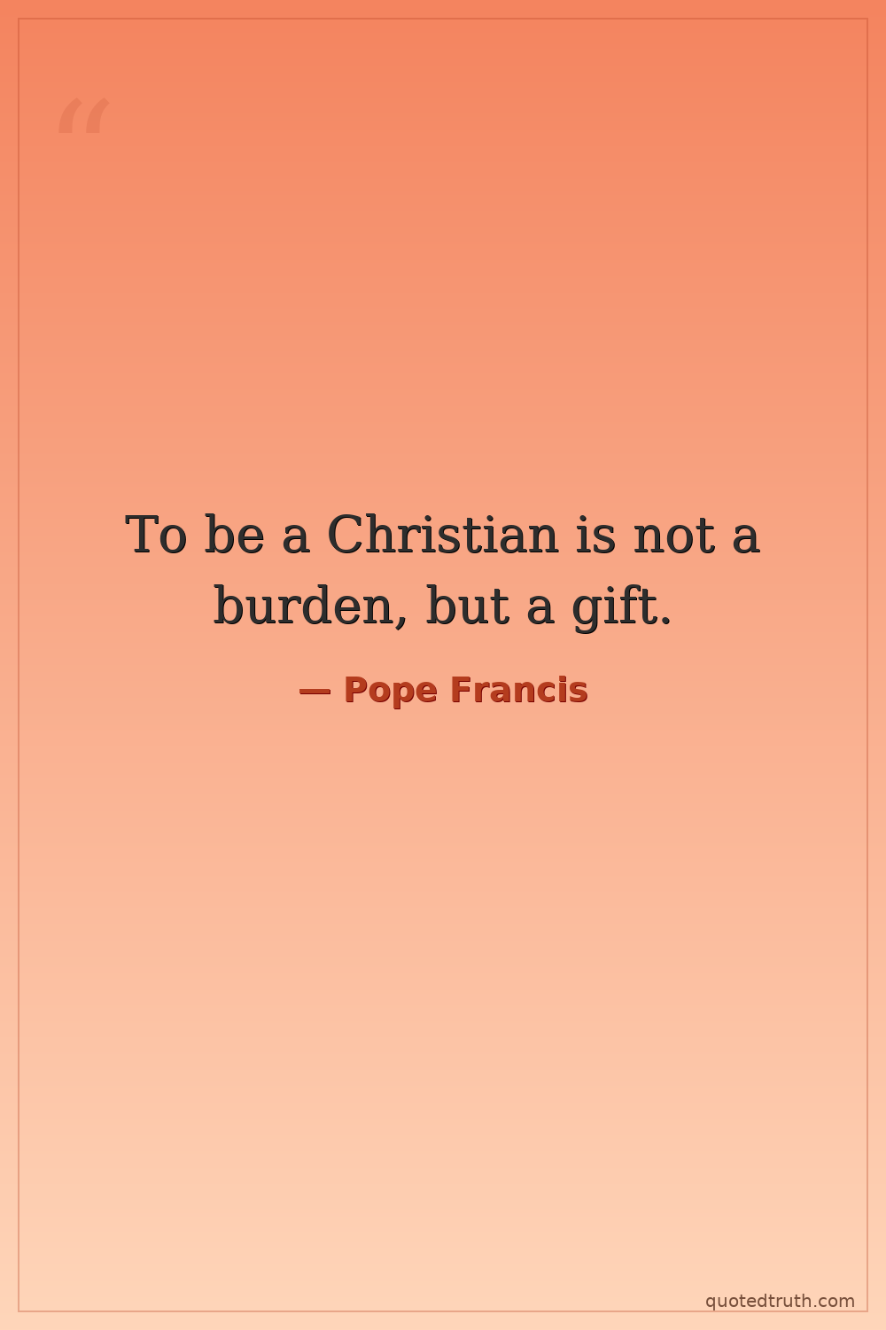 To be a Christian is not a burden, but a gift.