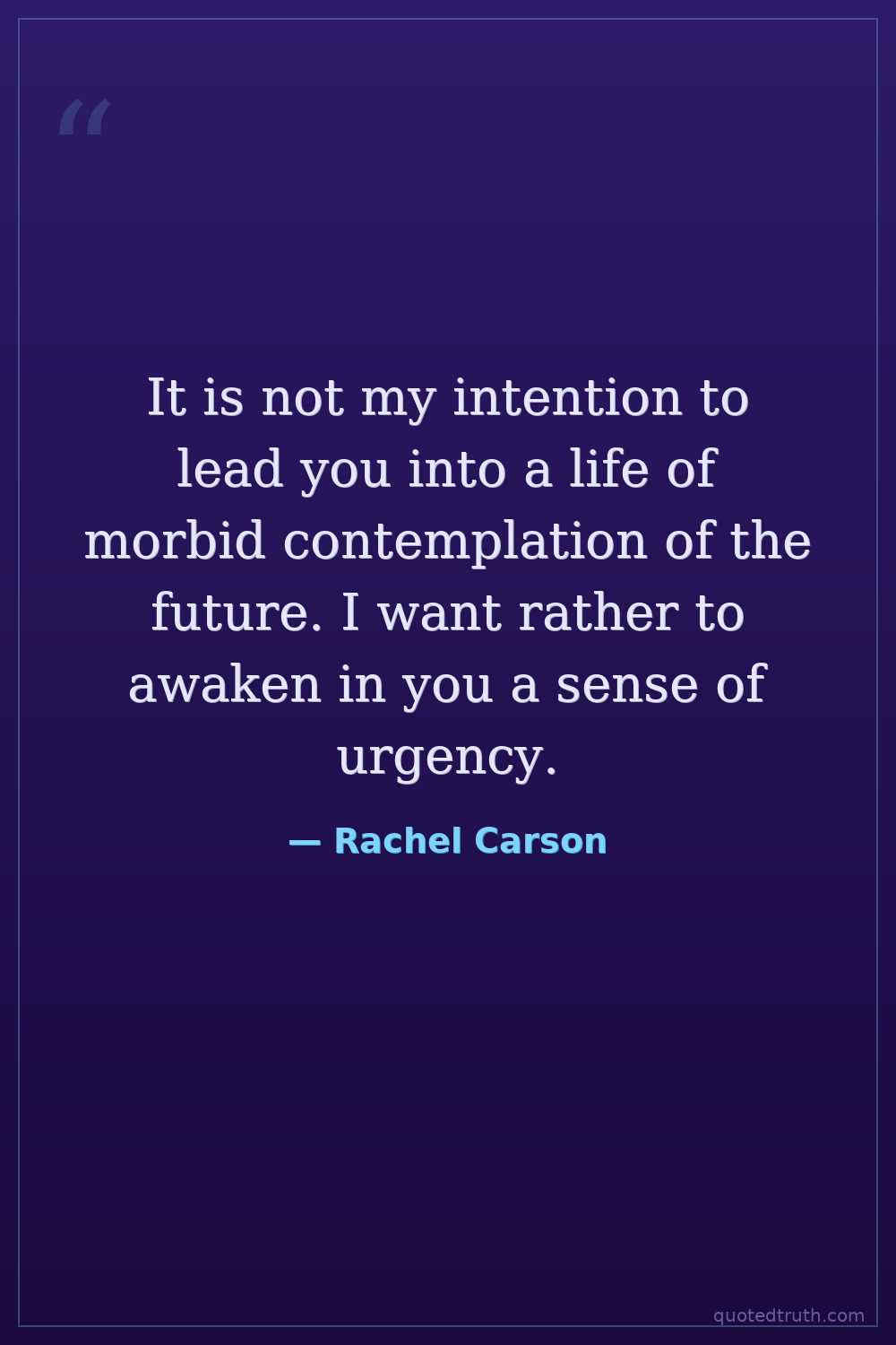 It is not my intention to lead you into a life of morbid contemplation of the future. I want rather to awaken in you a sense of urgency.