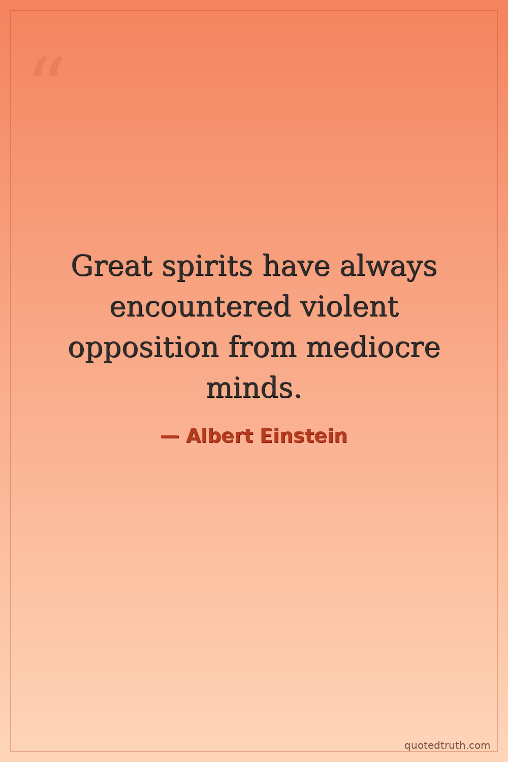 Great spirits have always encountered violent opposition from mediocre minds.