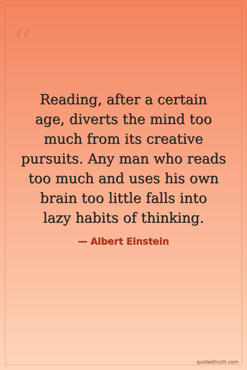 Reading, after a certain age, diverts the mind too much from its creative pursuits. Any man who reads too much and uses his own brain too little falls into lazy habits of thinking.