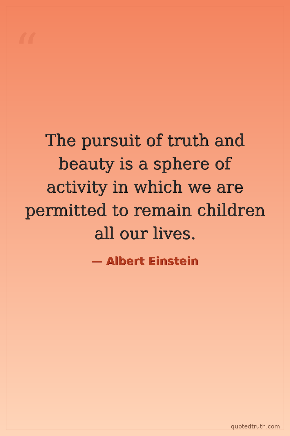 The pursuit of truth and beauty is a sphere of activity in which we are permitted to remain children all our lives.
