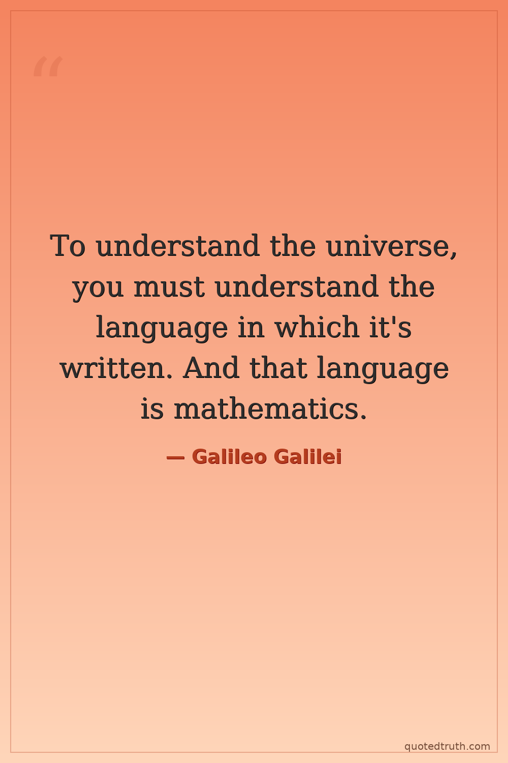 Humorous"The universe is a grand book which cannot be understood unless one first learns to comprehend the language and interpret the characters in which it is written."
