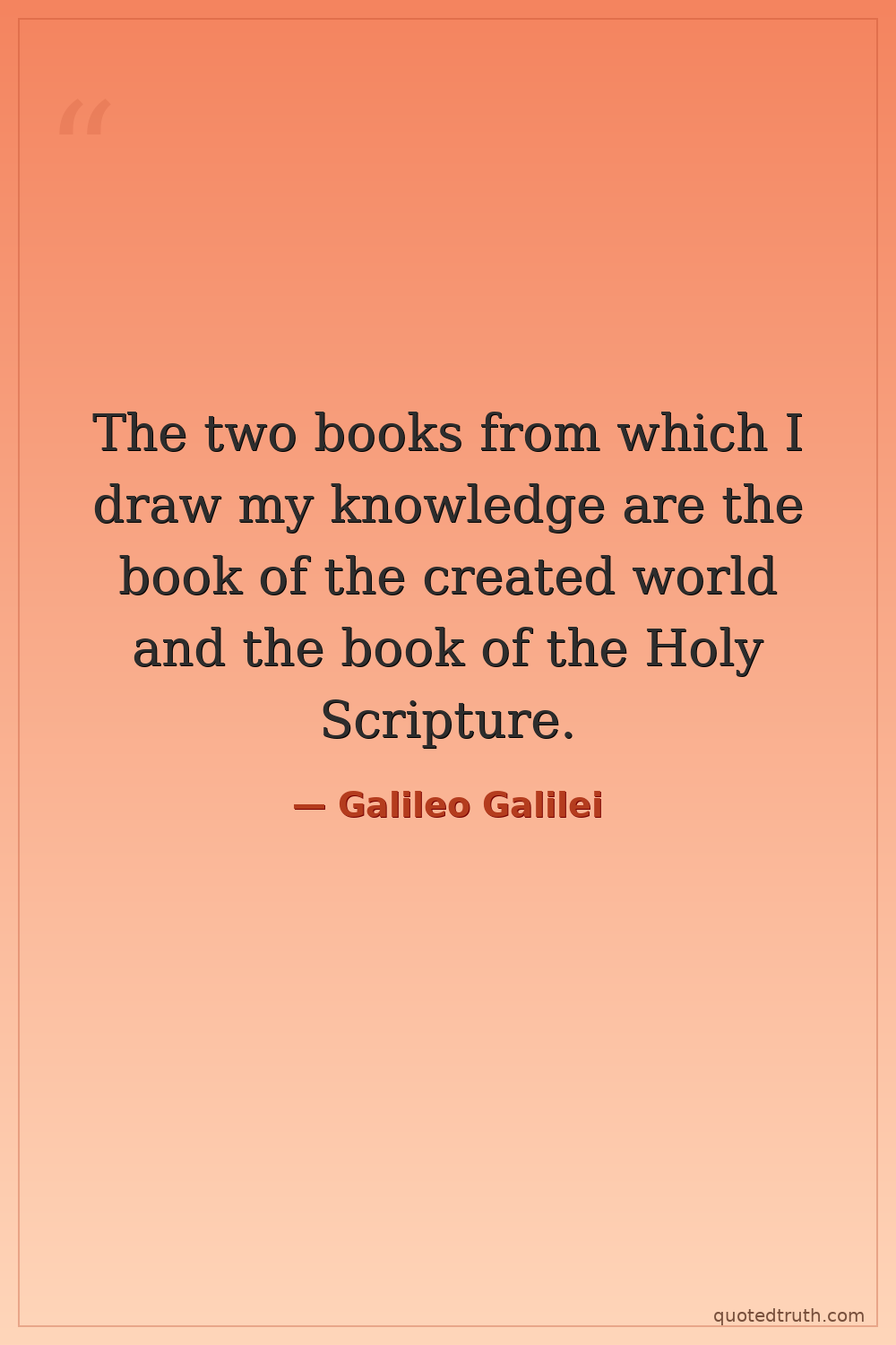 The two books from which I draw my knowledge are the book of the created world and the book of the Holy Scripture.