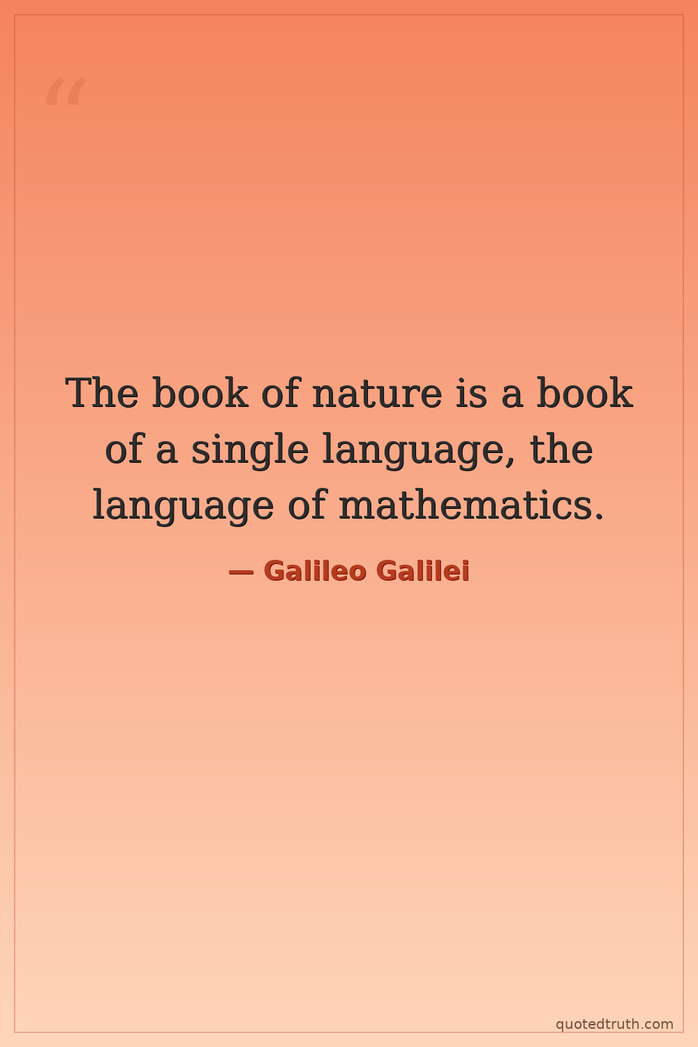 The book of nature is a book of a single language, the language of mathematics.