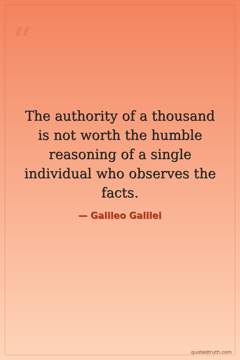 The authority of a thousand is not worth the humble reasoning of a single individual who observes the facts.