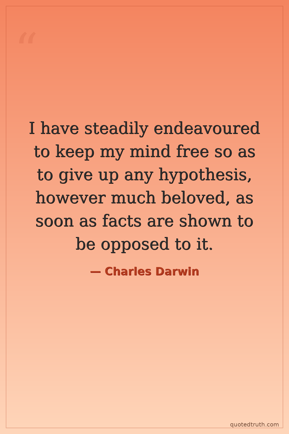 I have steadily endeavoured to keep my mind free so as to give up any hypothesis, however much beloved, as soon as facts are shown to be opposed to it.