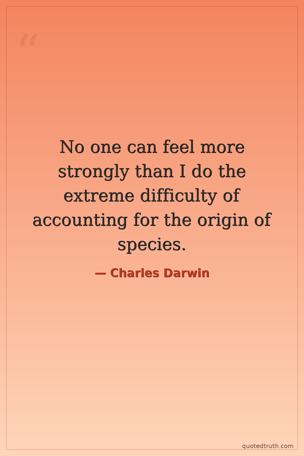 No one can feel more strongly than I do the extreme difficulty of accounting for the origin of species.