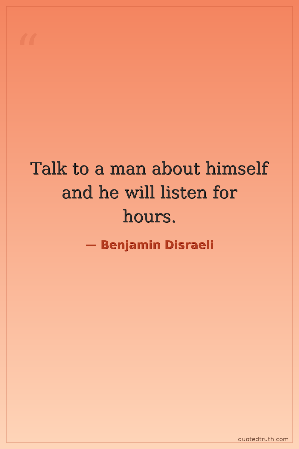 Talk to a man about himself and he will listen for hours.