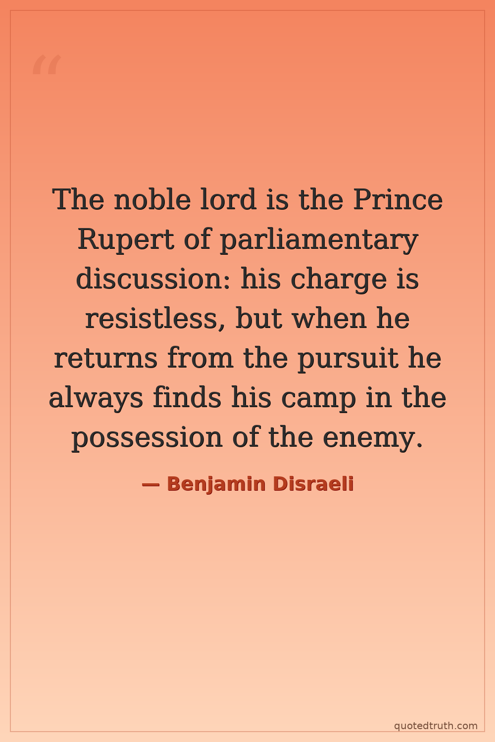 The noble lord is the Prince Rupert of parliamentary discussion: his charge is resistless, but when he returns from the pursuit he always finds his camp in the possession of the enemy.