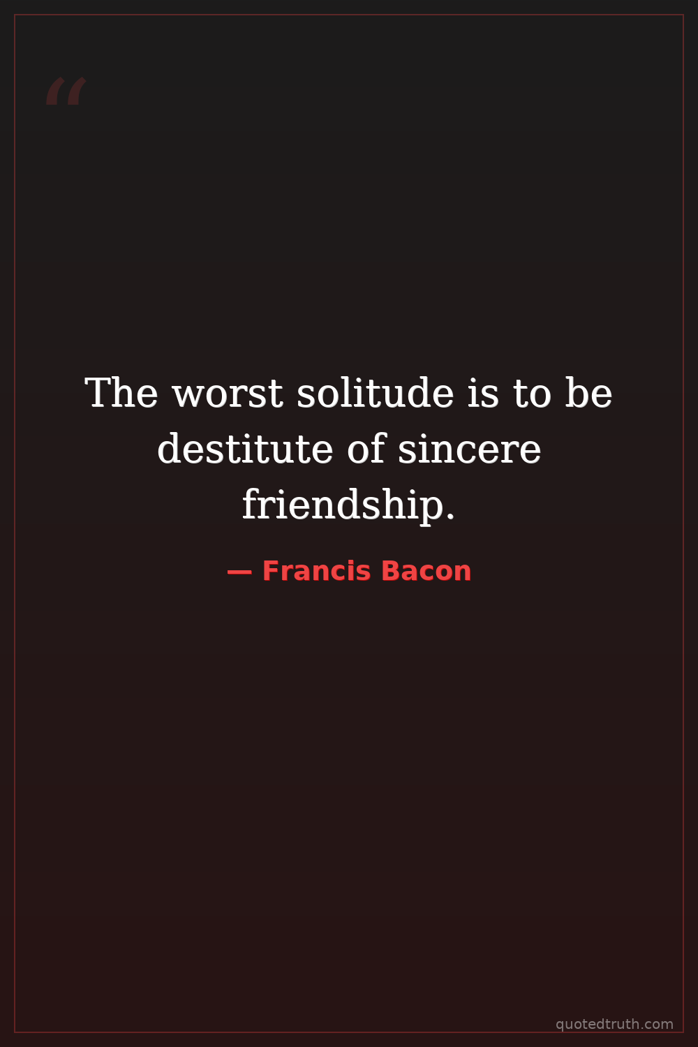 The worst solitude is to be destitute of sincere friendship.