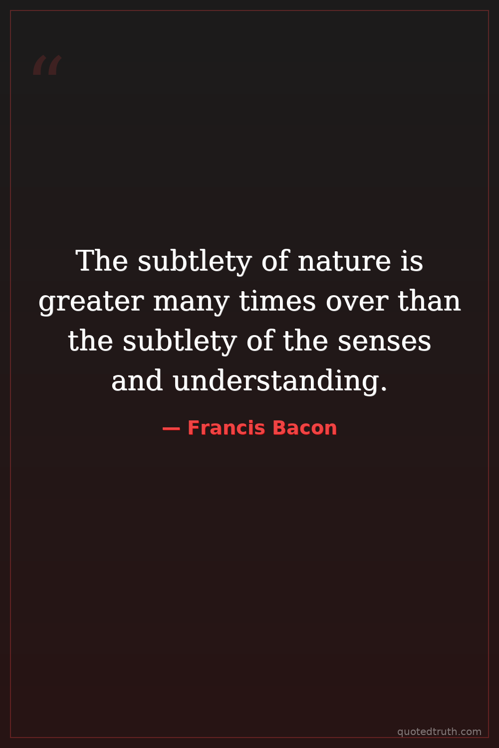 The subtlety of nature is greater many times over than the subtlety of the senses and understanding.
