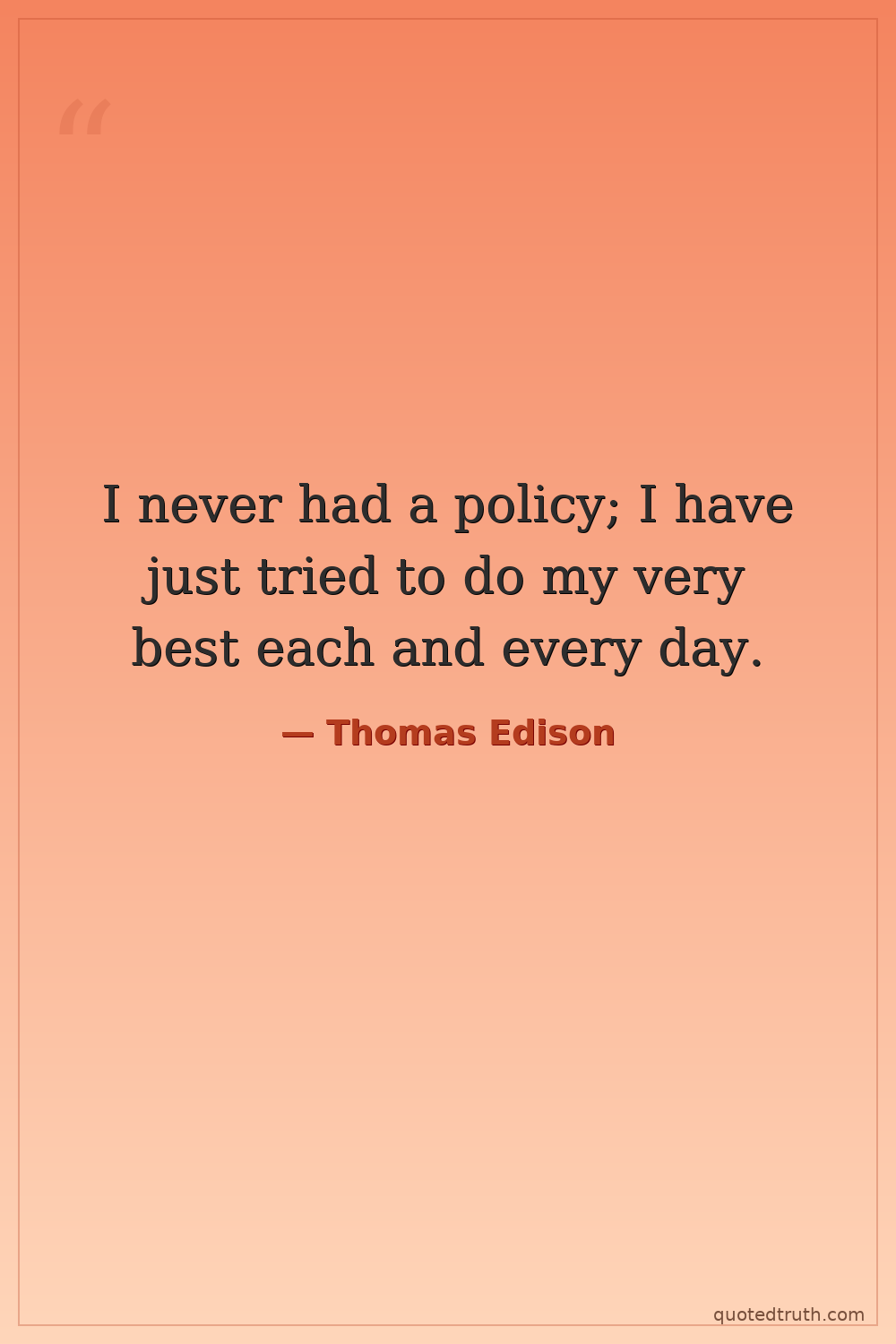 I never had a policy; I have just tried to do my very best each and every day.