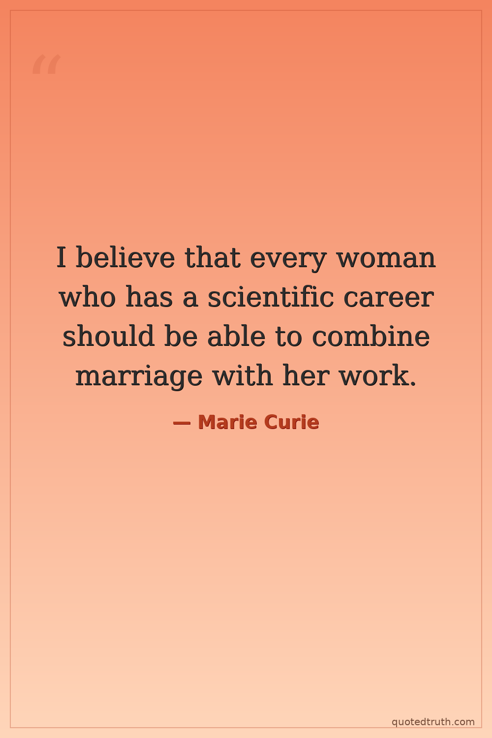 I believe that every woman who has a scientific career should be able to combine marriage with her work.