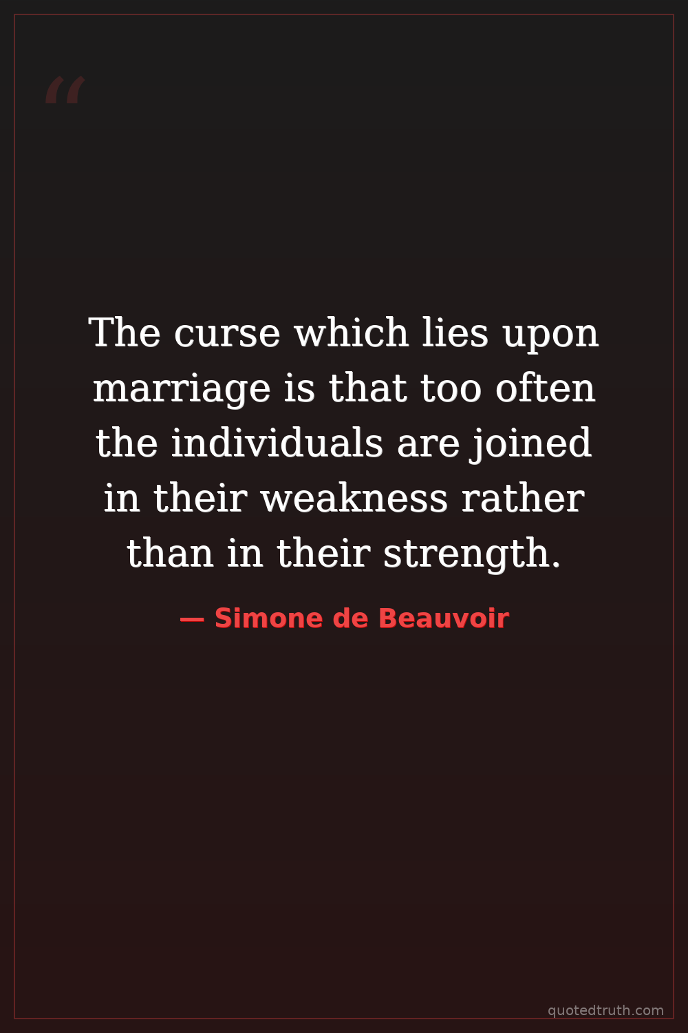 The curse which lies upon marriage is that too often the individuals are joined in their weakness rather than in their strength.