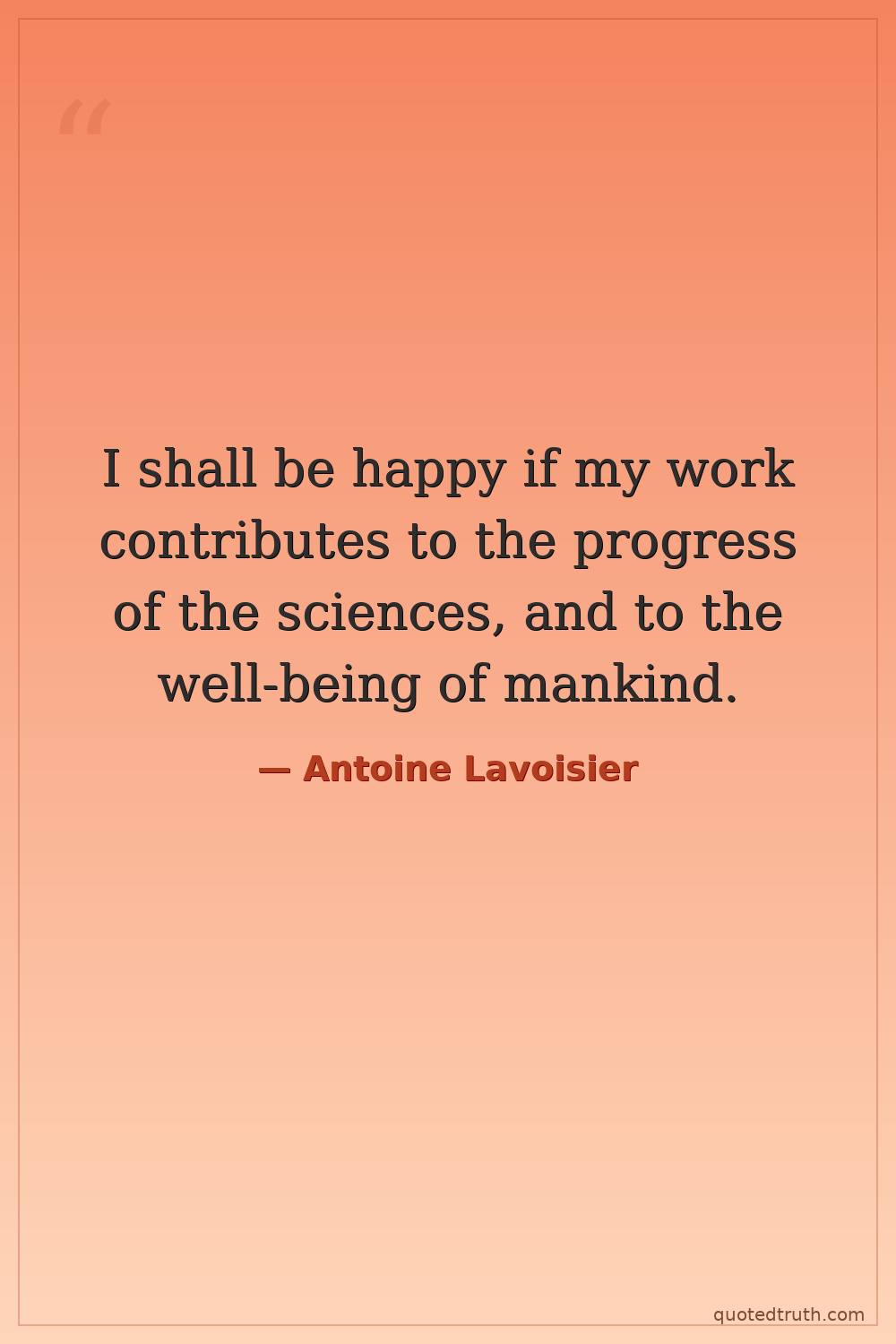 I shall be happy if my work contributes to the progress of the sciences, and to the well-being of mankind.