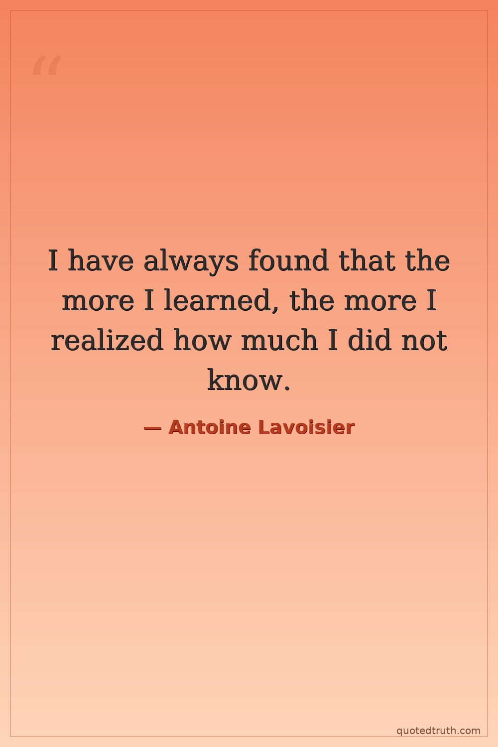 I have always found that the more I learned, the more I realized how much I did not know.