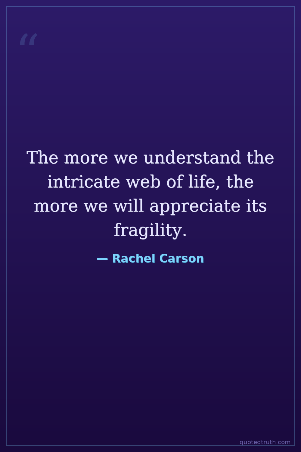 The more we understand the intricate web of life, the more we will appreciate its fragility.
