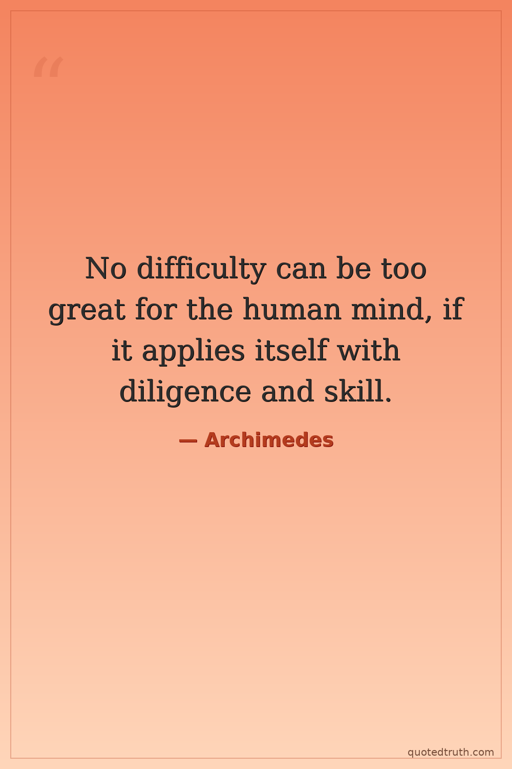 No difficulty can be too great for the human mind, if it applies itself with diligence and skill.