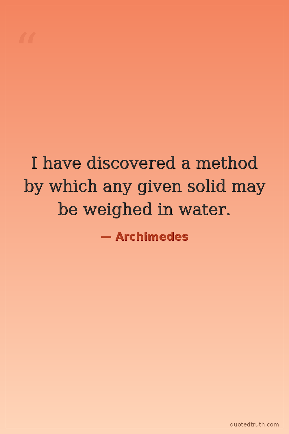 Humorous"Any solid lighter than a fluid will, if placed in the fluid, be immersed in it to such an extent that the weight of the solid will be equal to the weight of the fluid displaced."