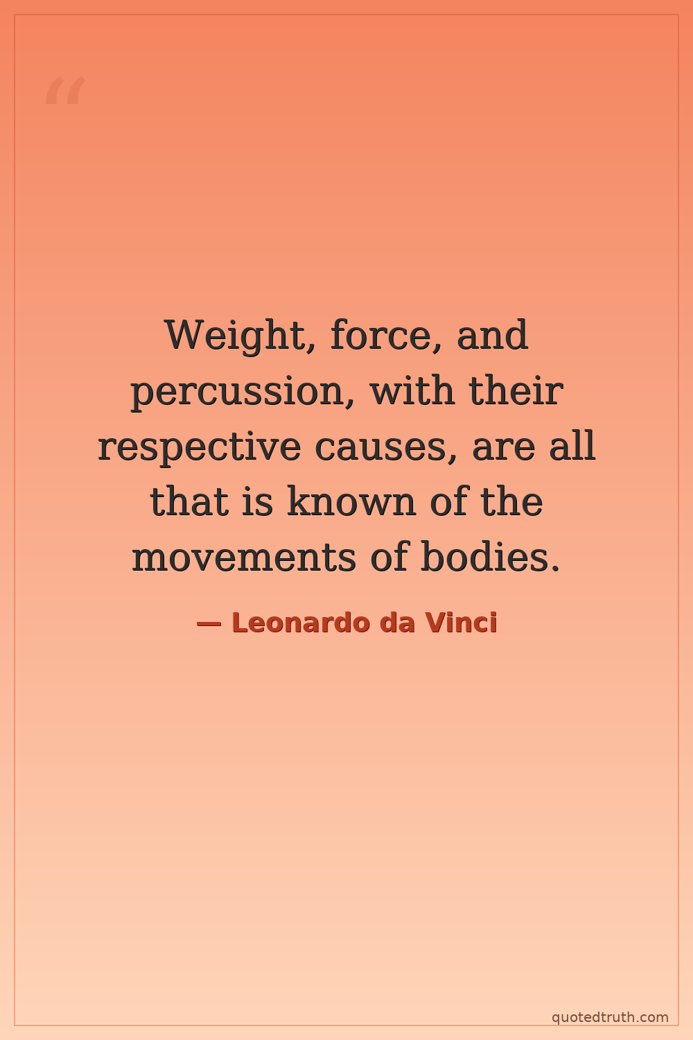 Weight, force, and percussion, with their respective causes, are all that is known of the movements of bodies.