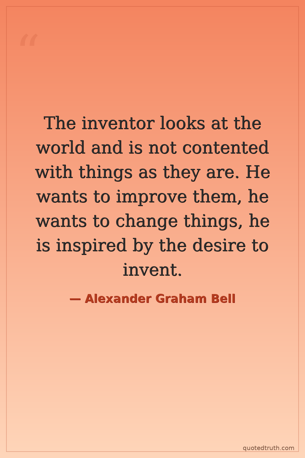 The inventor looks at the world and is not contented with things as they are. He wants to improve them, he wants to change things, he is inspired by the desire to invent.