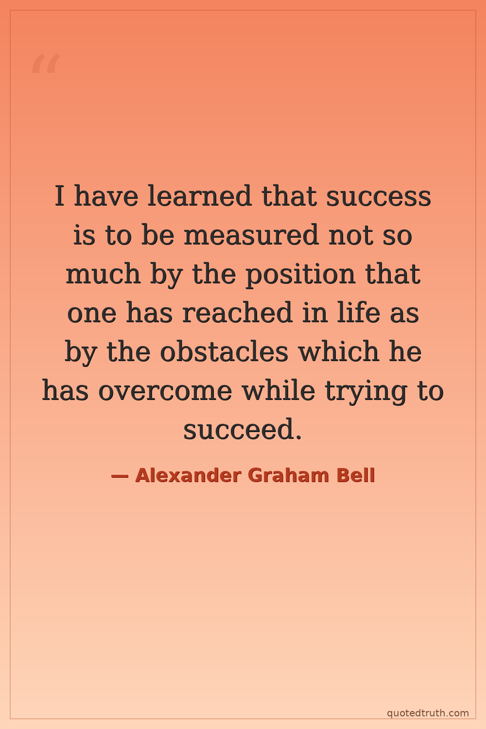 I have learned that success is to be measured not so much by the position that one has reached in life as by the obstacles which he has overcome while trying to succeed.