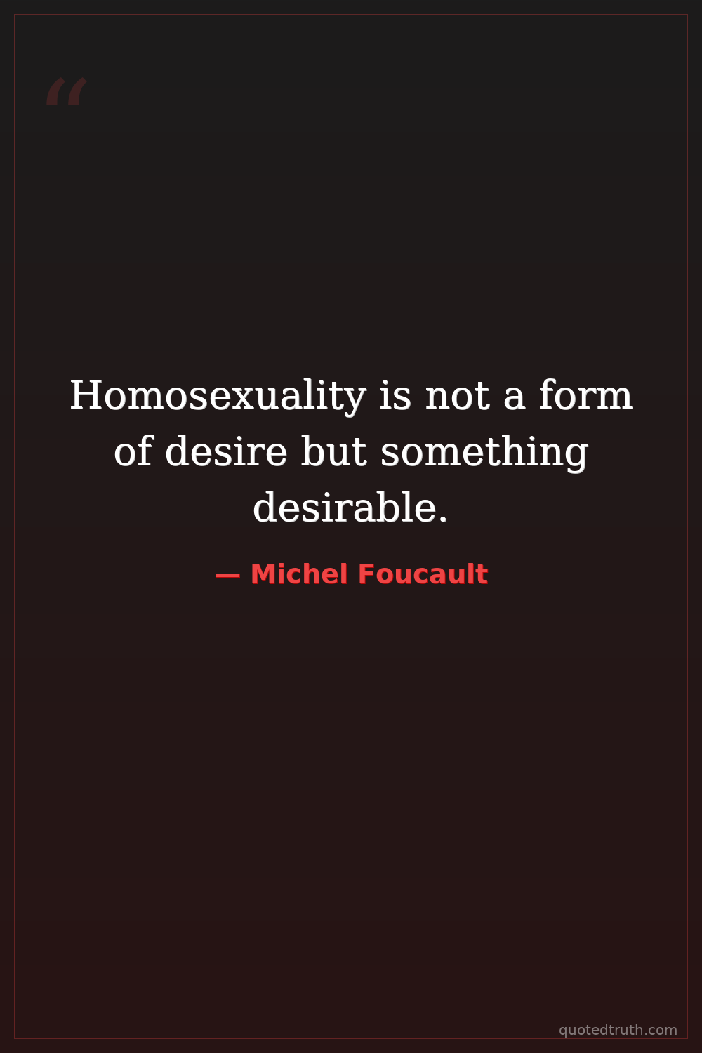 "The history of sexuality is not the history of sexual practices, but the history of the discourse on sexuality."