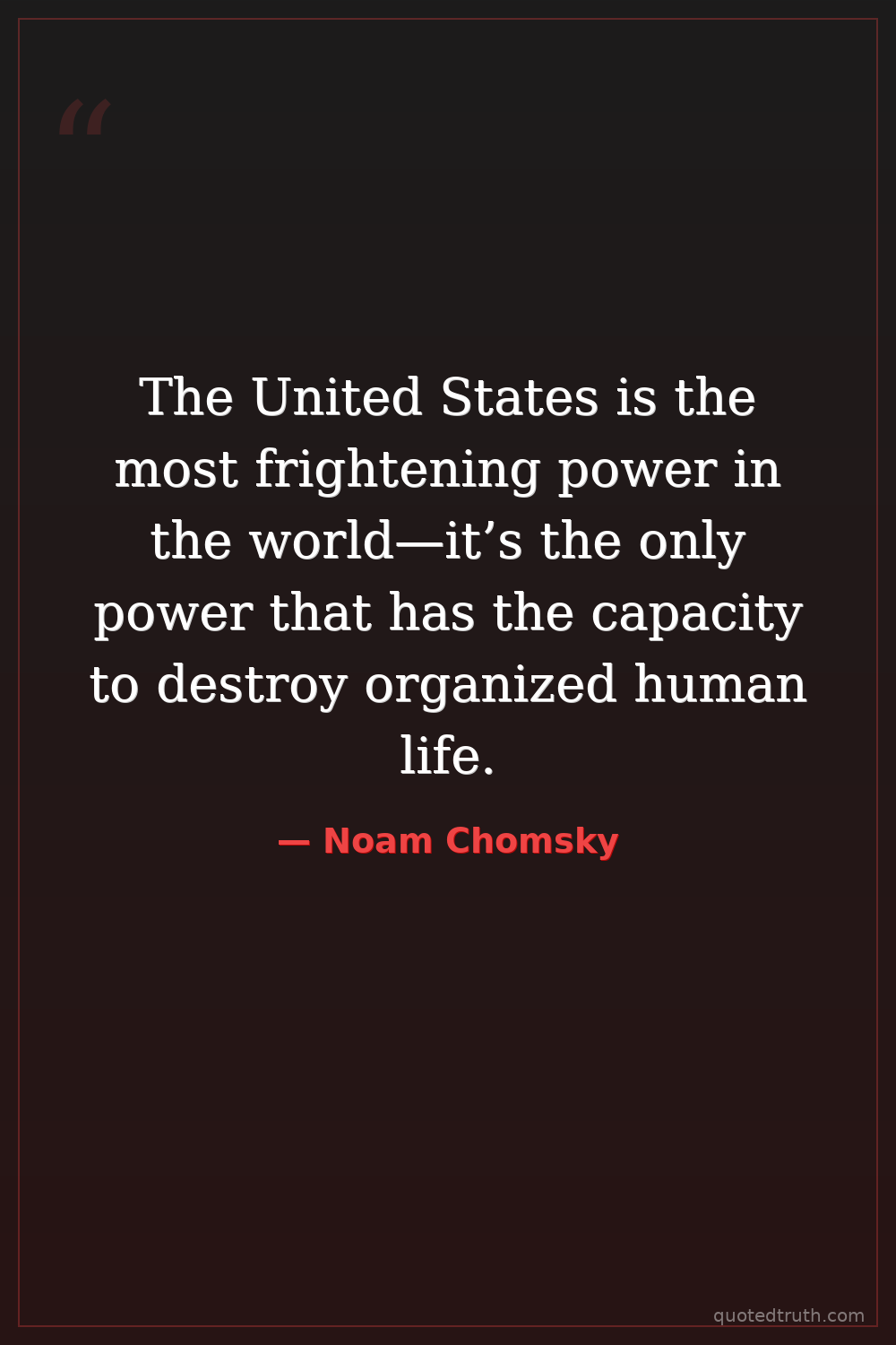 The United States is the most frightening power in the world—it’s the only power that has the capacity to destroy organized human life.