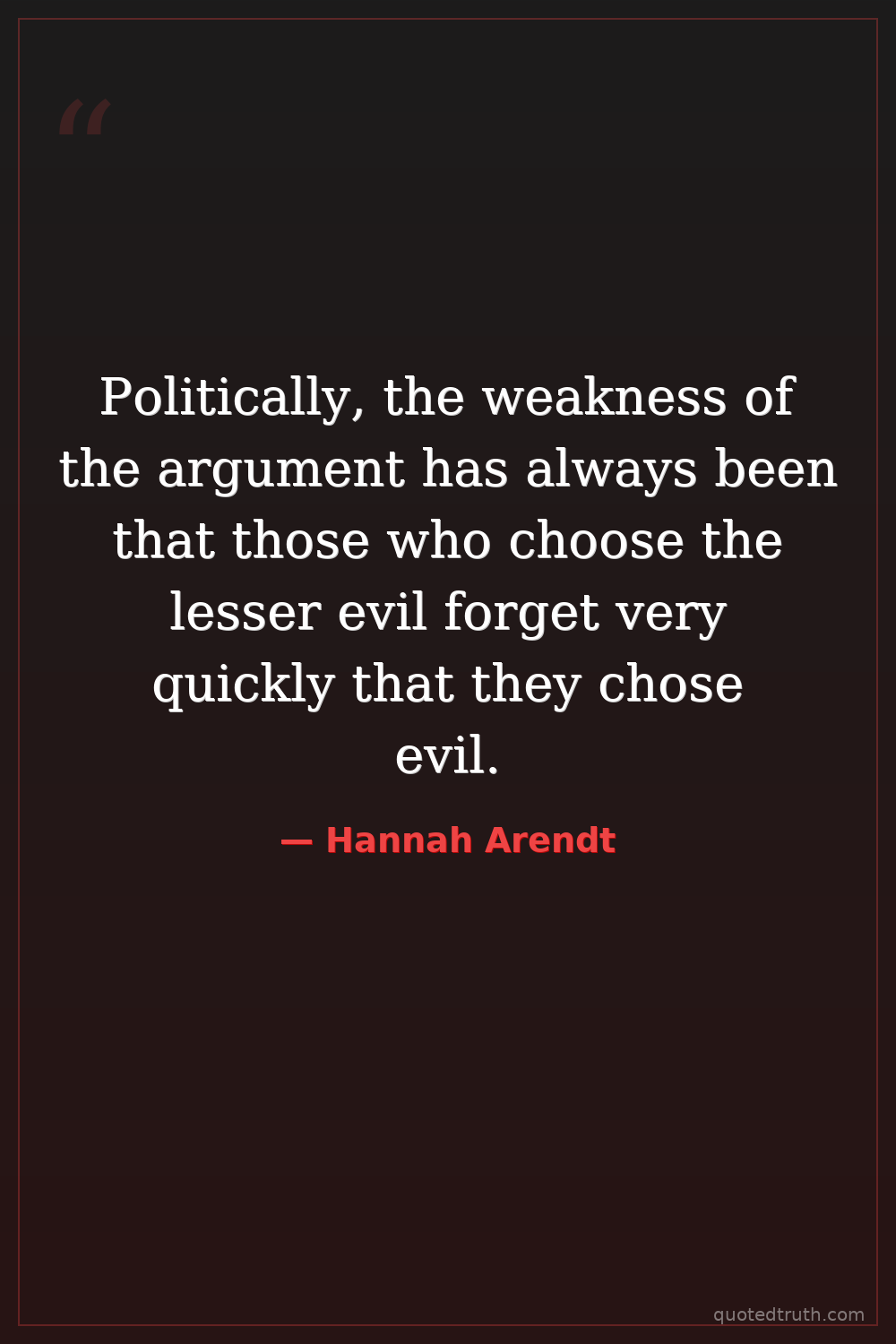 Politically, the weakness of the argument has always been that those who choose the lesser evil forget very quickly that they chose evil.
