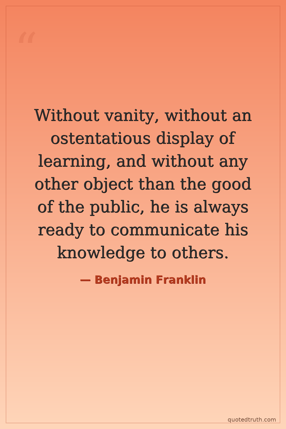 Without vanity, without an ostentatious display of learning, and without any other object than the good of the public, he is always ready to communicate his knowledge to others.