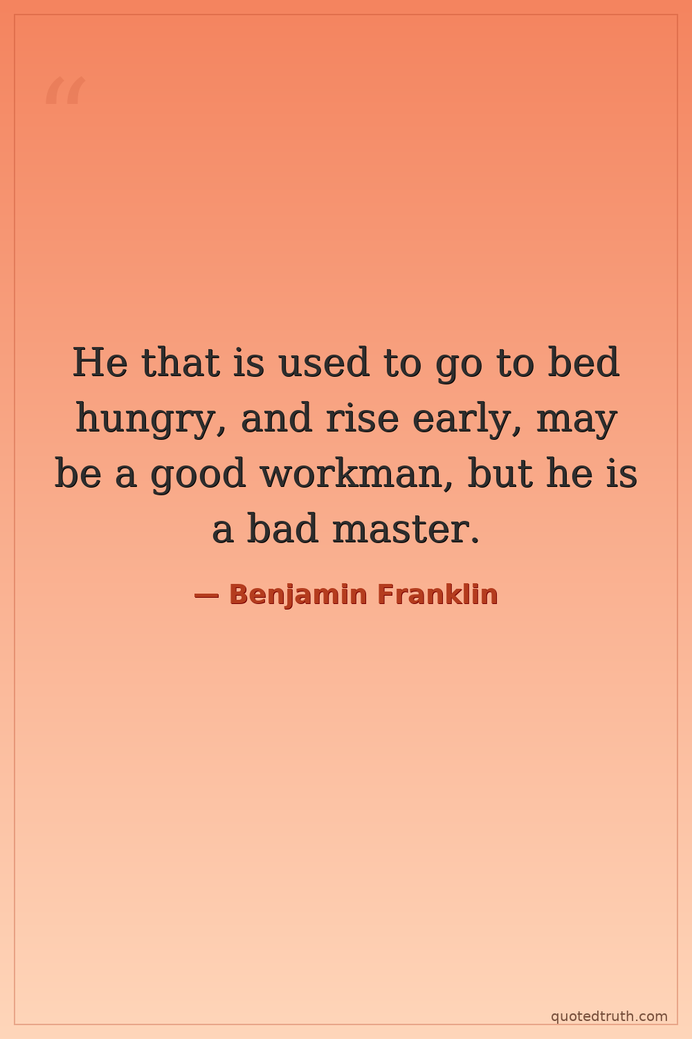 He that is used to go to bed hungry, and rise early, may be a good workman, but he is a bad master.