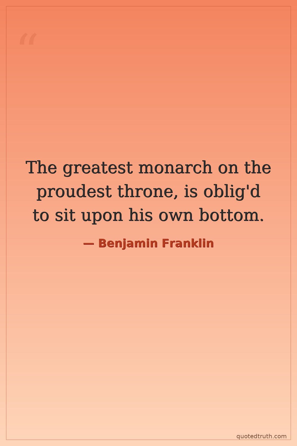 The greatest monarch on the proudest throne, is oblig'd to sit upon his own bottom.
