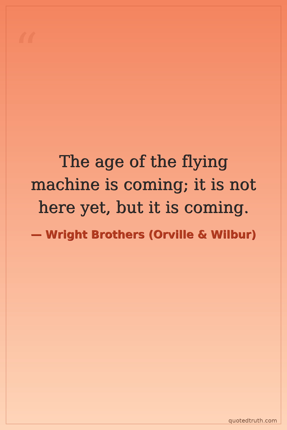The age of the flying machine is coming; it is not here yet, but it is coming.