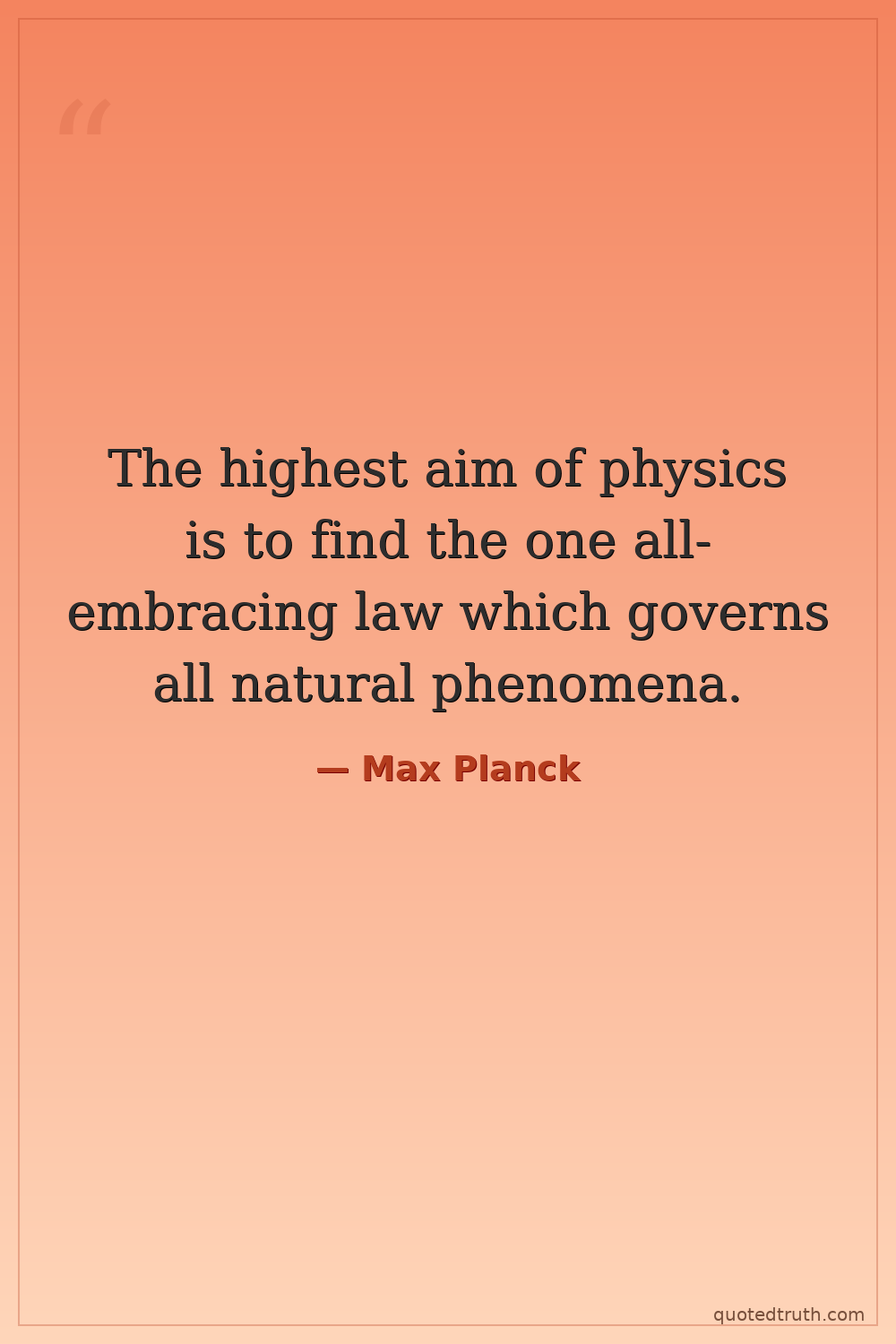 The highest aim of physics is to find the one all-embracing law which governs all natural phenomena.
