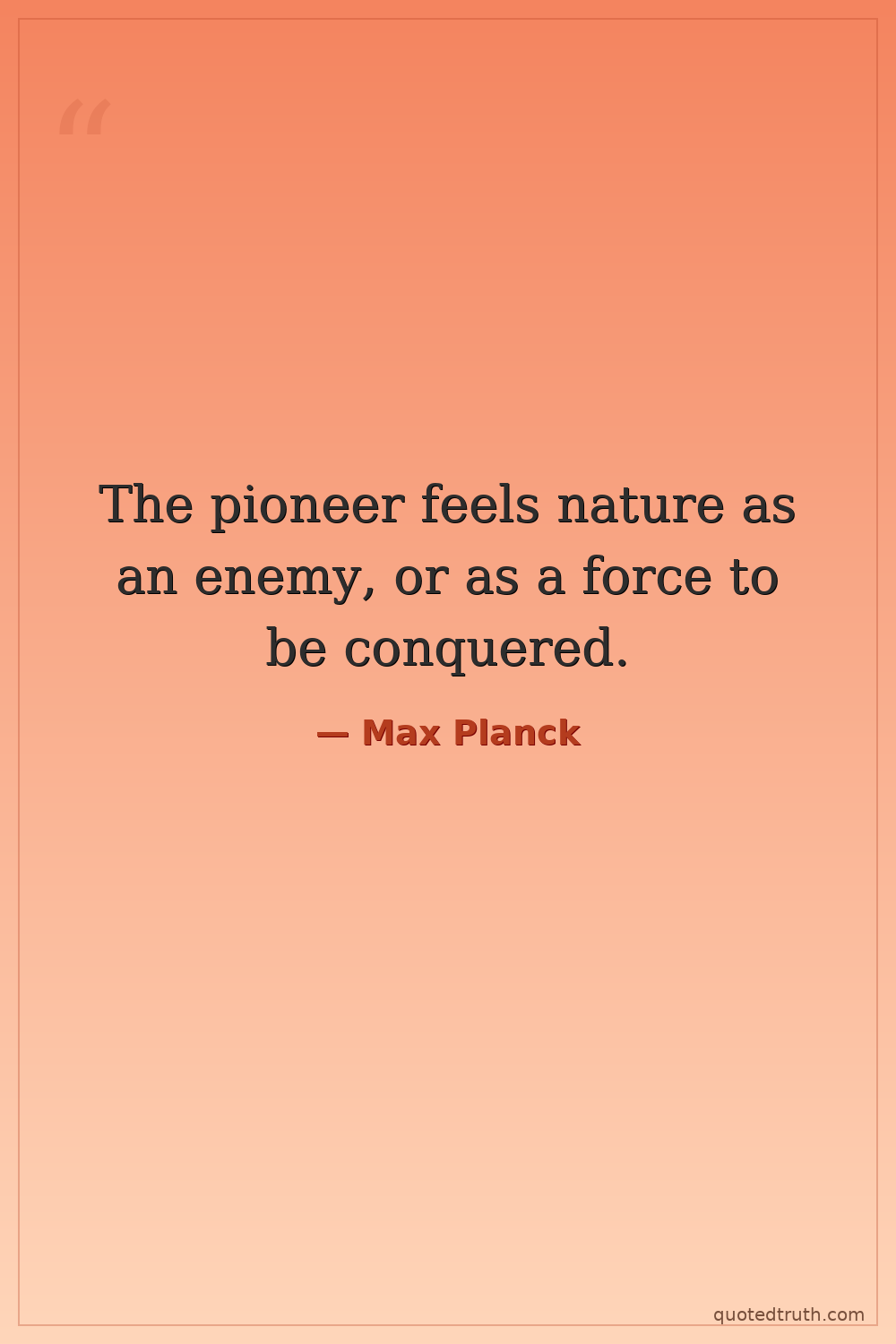 The pioneer feels nature as an enemy, or as a force to be conquered.